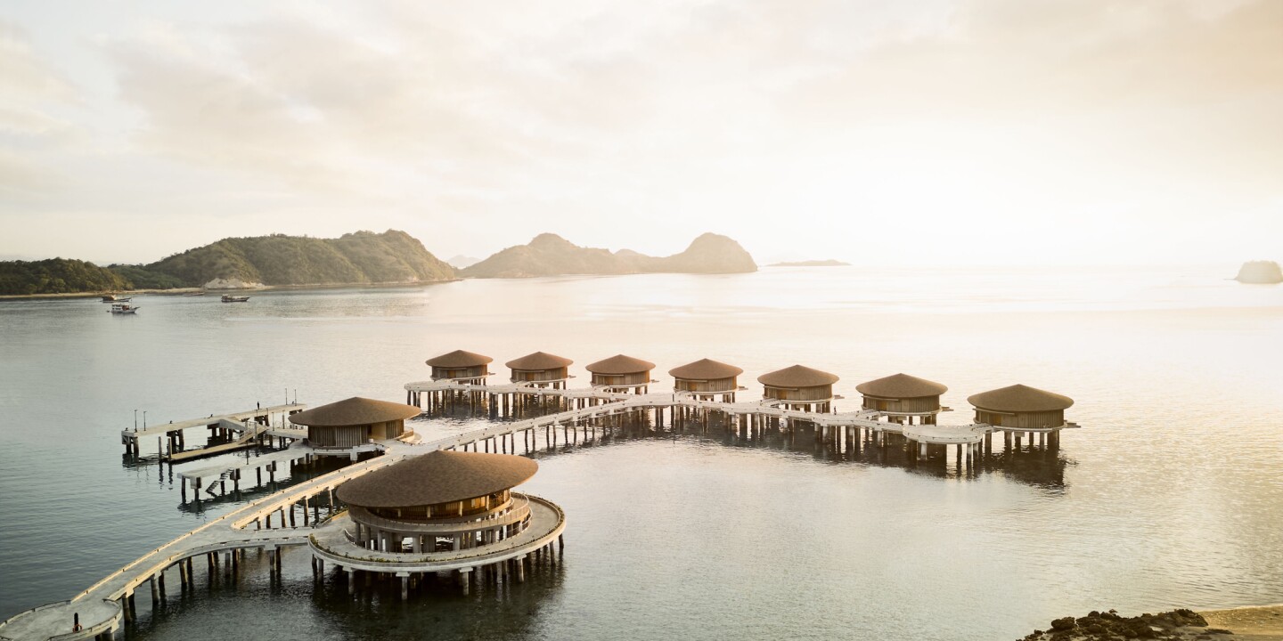 At the forefront of Labuan Bajo’s rising popularity is Ta’aktana, a Luxury Collection Resort & Spa, composed of 70 guest rooms done up in soothing dark blues and warm wood accents. (Room options include seven coveted overwater villas.) The hotel embodies the area’s history, culture, and indigenous traditions, allowing honeymooners to immerse themselves in the locale’s quiet pace. Ta’aktana offers a number of on and off-property activities, including komodo dragon viewing, snorkeling with turtles, or experiencing local Manggarai traditions. Guests have three on-property dining options, a fabulous overwater bar called Maiga (perfect for sundowners), and 24-hour butler service. The hotel also has an Olympic-size swimming pool, a resort-style pool, and a small private beach.