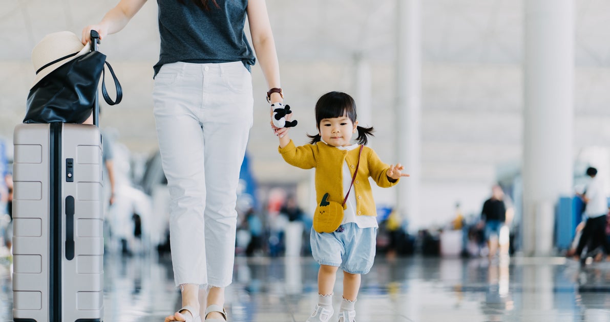 On busy travel days, little kids can get restless and end up playing or rolling around on the floor of the airport, train station, plane, etc.