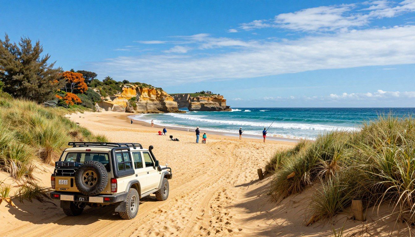 Day-trip ideas: short walks, beach time at dawn for fishing windows and easy coastal views. Reduce tyre pressure before sand driving. Drive to conditions and stick to designated tracks—dune protection matters and fines apply.