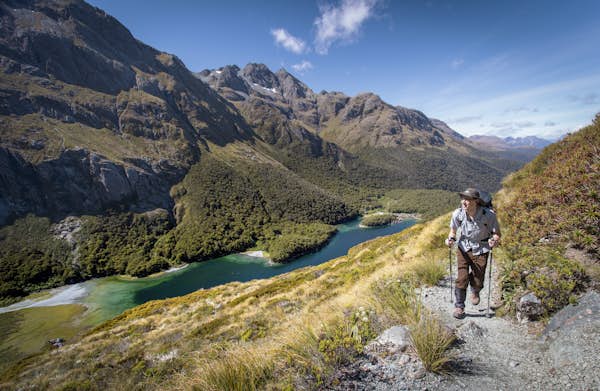 About 25 minutes from Milford Sound/Piopiotahi, the hike to Gertrude Saddle is a wonderful way to experience the Fiordland National Park in a single day. A challenging day hike that’s best suited for advanced climbers, this route takes you up through the mountains and to amazing views of the valley, overlooking part of Milford Sound/Piopiotahi.